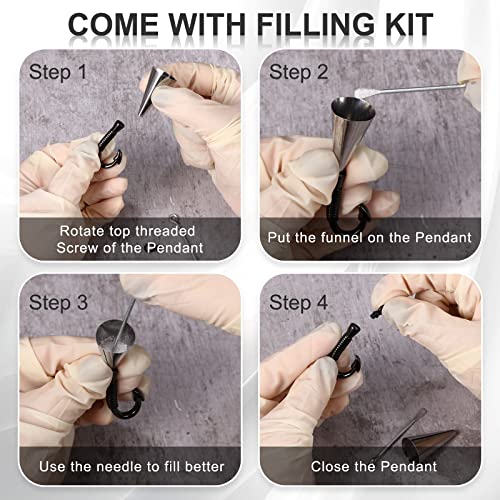 • Easy Installation for You: first, turn the screw cap on the memorial urn pendant to open it, then, place the mini funnel on the pendant, and fill the pendant with a small spoon, finally, put a drop of glue to the mouth of the pendant and tighten the top of it