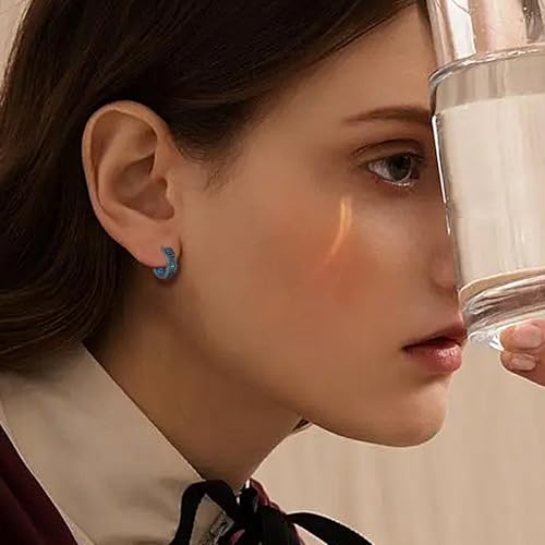 Men Earrings Viking Rune Hoop Celtic Earring for Women Punk 16mm 925 Sterling Silver Huggie Black Blue Hoop Earrings Norse Viking Jewelry Gifts 7