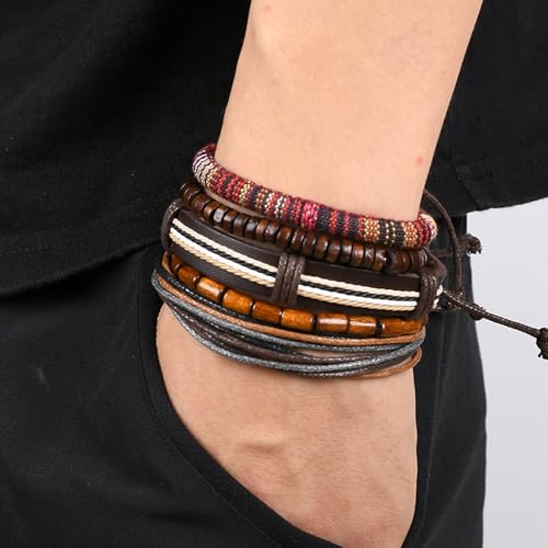 HOT ! NEWITIN 36 Pieces Braided Leather Bracelets for Men Woven Cuff Wrap Bracelet Wood Beads Cuff Bangle Adjustable Wristband Bracelets Ethnic Tribal Bracelet Set for Women Men