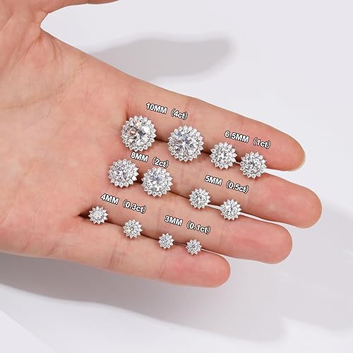 • Exceptional Quality Moissanite: These moissanite stud earrings are all D colour VVS1 clarity genuine moissanite, made of 0.1ct moissanite, total 0.2ct one pair. These halo stud earrings are perfect for women; each moissanite stone can pass 100% testing and get a GRA certificate