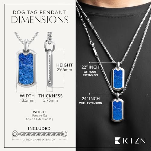 RTZN® Lapis Lazuli Necklace for Men – Premium Handcrafted Lapis Lazuli Pendant Necklaces - Blue Lapis Pendant Necklace Dog Tag with Stainless Steel Chain 22" Inch + 2" Extension 1