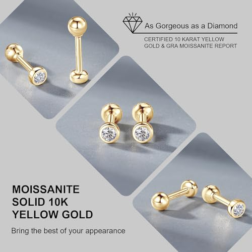 More information about Solid 10K Yellow Gold Ball Stud Earrings, Tiny Moissanite Earrings Real 10K Gold Dainty Screw Ball Back Small Studs Dangle Earring for Womem Men, Cartilage Helix Tragus Piercing Jewelry Gifts, 1 Pair
