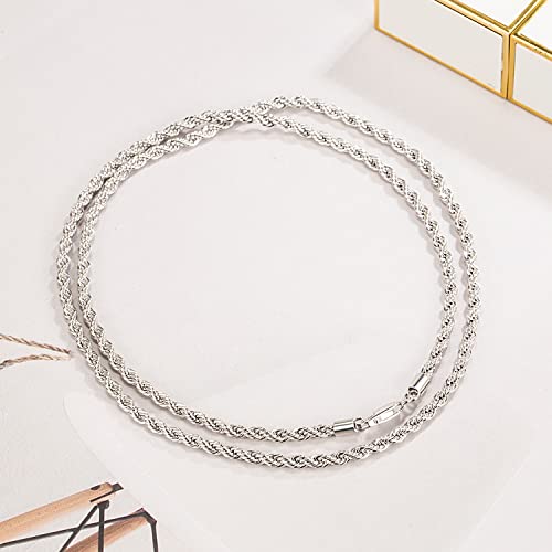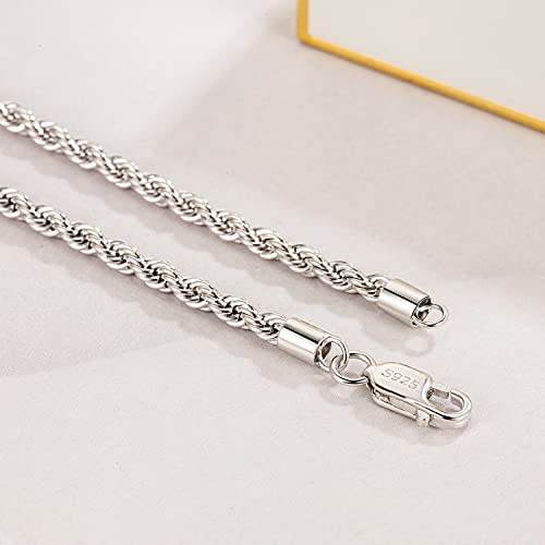 • UNIQUE UNISEX SILVER JEWELRY- Diamond Cut crafts classic rope chain Necklace for Men & Women wear, high polishing crafts makes the silver Necklace smooth and brighter than others. 925 Sterling Silver 3mm Twist Rope Chain - Italian craftsmanship gives this classic Necklace the most fashionable feel, this Clasp Rope Chain is a perfect jewelry for people to get a fashion look.can wear simply or layering with otherChain Pendant or Neck jewelry will also get a popular trends.
