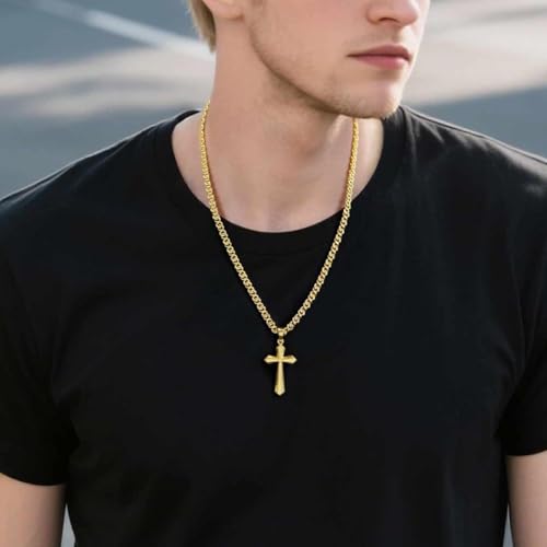 • [STYLISH CABLE CHAIN] Made with a robust cable chain, this crucifix necklace women combines strength with elegance. Wear it every day with confidence, knowing that the design of the crucifix necklace men ensures both style and longevity, while the radiant gold finish keeps you shining from day to night