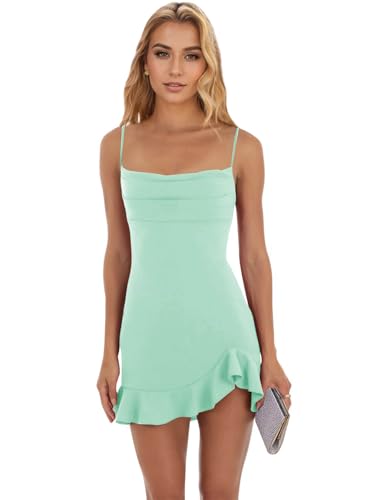 Women's Short Homecoming Dresses Tight for Teens Spaghetti Straps Bodycon Cocktail Party Gown with Ruffle Hem 6