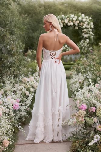 Floral Bridesmaid Dresses for Women Carmen Backless Formal Dress Chiffon Corset Ruffle High Slit Flowy Evening Prom Gown 6