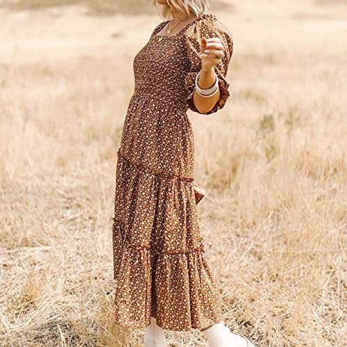 Mommy and Me Matching Dresses Floral Printed Ruffled Lantern Sleeves A-Line Long Dress Mom Daughter Matching Outfits 5