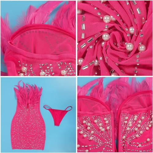More information about Birthday Dresses for Women Sexy Sparkle Feather See-Through Night Dinner Sequin Rhinestone Outfit XS-2XL