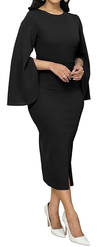 More information about Women Church Dresses Bodycon Work Dress Bell Long Sleeve Round Neck Business Pencil Dresses