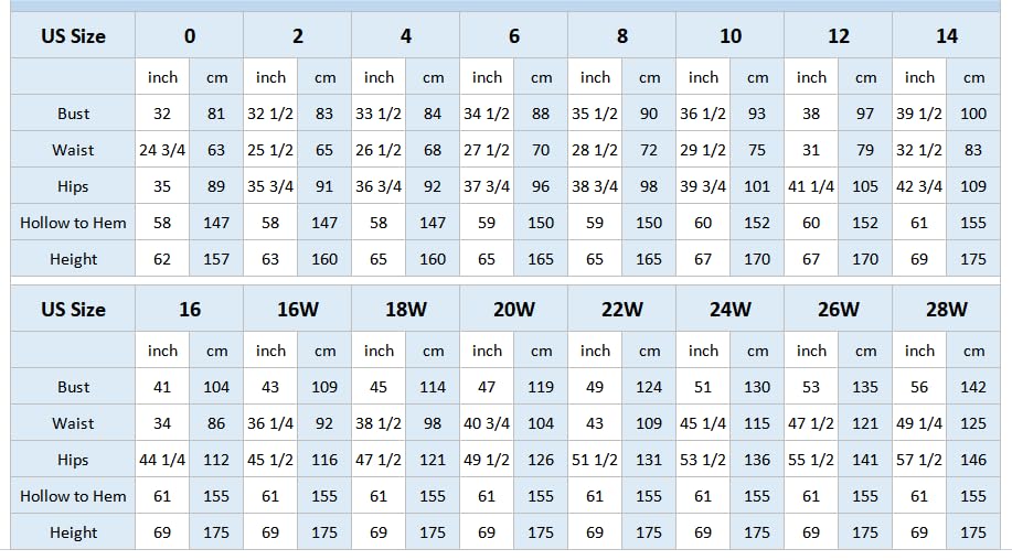 • Size&Custom: Please Refer to The Size Chart Before Purchasing. If You Want to Customize Dress, Please Send us All Your Actual Measurements (Bust,Waist,Hips and Hollow to Floor with Heels, Height) after You Place an Order, then We will Make The Dress Fit You Perfect. (Free customization with no extra charge)