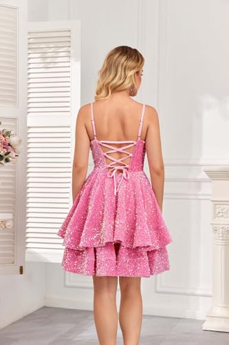 HOT ! Sparkly Sequin Homecoming Dresses for Teens Tiered Short V Neck Prom Dresses 2024 Formal Cocktail Gown