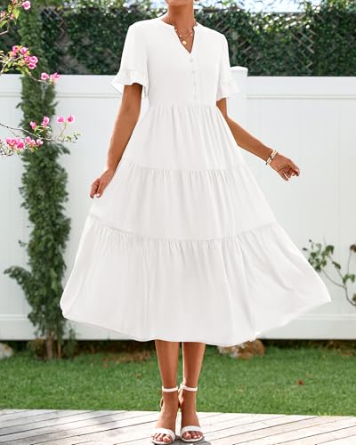 • FEATURES: Boho Dresses For Women, Short Sleeve Dress, Casual Midi Dresses, Tiered Ruffle Dresses, V Neck Dress, Flowy A-Line Dresses, Loose Fit Dresses, Deco Buttons, Side Pockets