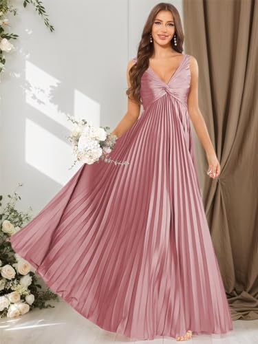 More information about BANTRATIC Satin Sleeveless Bridesmaid Dresses for Women A-Line Pleated Maxi Formal Evening Wedding Guest Gown