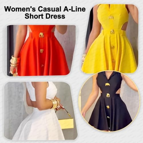 • Feature: Designed with a flattering V-neck and metal button-down front, this dress also features a hollow-out waist that accentuates curves. The sleeveless cut keeps you cool, and the A-line silhouette offers a comfortable yet stylish fit that moves with you