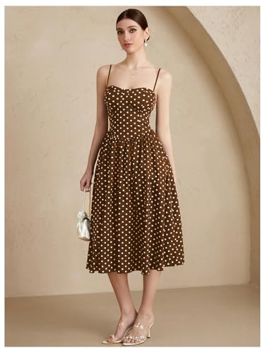 Women's Polka Dots Flared A Line Dress Spaghetti Strap Flowy Midi Vintage Party Dresses 4