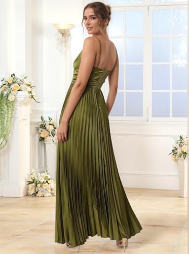 More information about Spaghetti Straps Bridesmaid Dresses for Women Long 2025 Pleated V Neck Prom Dress A Line Formal Evening Party Gowns
