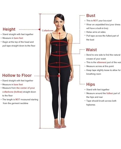 • SIZE DETAILS:Please refer to our size chart in the product image section on the left. PLEASE NOT AMAZON SIZE CHART. We accept free customization service, if you want to customize the dress, Please provide us your measurements of the Bust, Waist, Hips and Hollow to Floor when you place the order. The dress will be made fit you perfect, please contact with us by email within 12 hours after you place order.