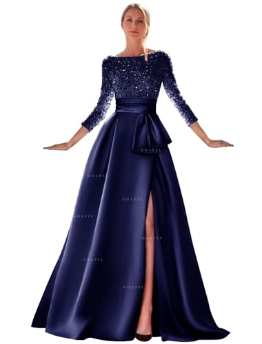 More information about Sequin Long Sleeve Prom Dress 2025 Long Ball Gown Satin Formal Evening Gown Boat Neck Wedding Guest Dresses for Women