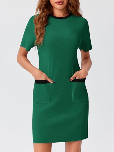 HOT ! Wenrine Womens Work Dress Business Casual Contrast Color Elegant Short Sleeve Knit Summer Mini Dress