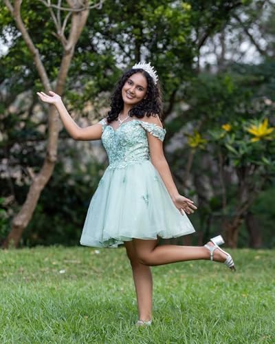 • Features: 3D Butterfly Homecoming Dresses 2025, Puffy Glitter Tulle Short Dama Dresses for Quinceanera. 3D Butterfly, Sparkly Tulle, Off Shoulder, Lace Appliques, Sweetheart Neck, A Line, Built in Bra, Lace-up Back.