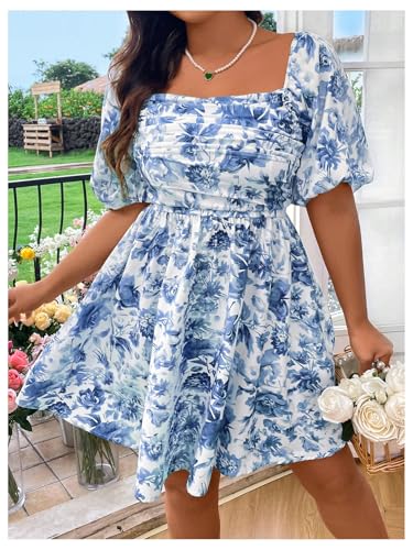 More information about WDIRARA Women's Plus Size Floral Bubble Puff Sleeve Dress Square Neck Holiday A Line Short Dresses