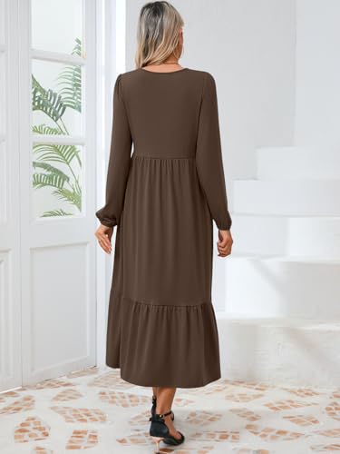 Women's Casual Long Sleeve Midi Dress 2024 Fall Crewneck A Line Tiered Flowy Loose Trendy Dresses with Pockets 6
