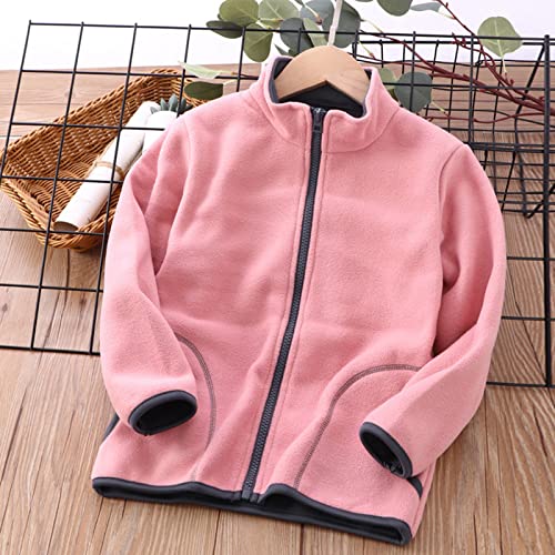 Kids Fall Jacket Toddler Boys Girls Long Sleeve Winter Solid Fleece Zipper Coat Jacket Thicken Warm (Pink, 3-4 Years) 5