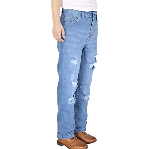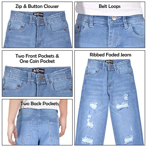 A2Z Kids Boys Relaxed Straight Fit Boot Cut Light Blue Ripped Jeans Stretchy Comfort - Jeans JN64 Light Blue._11-12 5