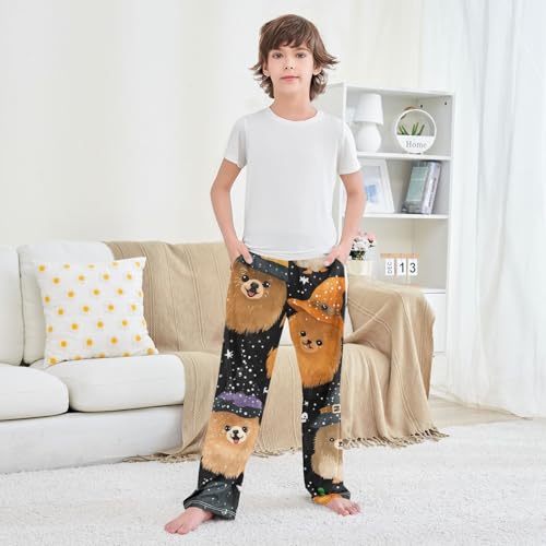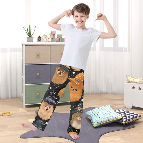 HOT ! ZZXXB Pomeranian with Witch Hat Boys Long Pants Soft Trousers Elastic Waist Kids Lounge Bottoms with Pockets S-XL