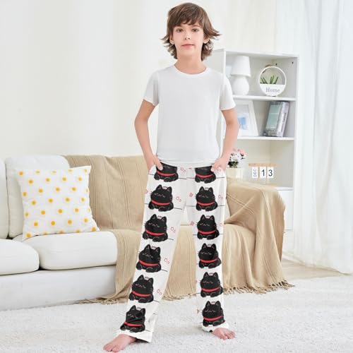 Boy's Pants Black Cat Smile Jogger Pants Elastic Waist Long Bottoms Trousers with Pockets 6-14 Years 7