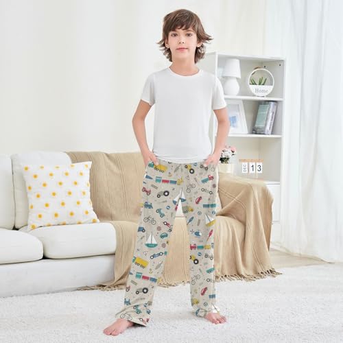 ZZXXB Train Car Plane Boys Long Pants Soft Trousers Elastic Waist Kids Lounge Bottoms with Pockets S-XL 1