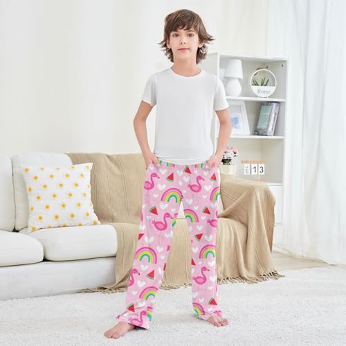 Flamingo Rainbow Watermelon Boys Long Pants Soft Trousers Elastic Waist Kids Lounge Bottoms with Pockets S-XL 4