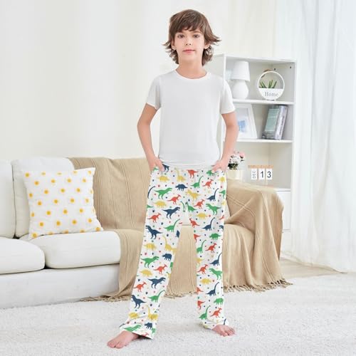 ZZXXB Dinosaur Colorful Pattern Boys Long Pants Soft Trousers Elastic Waist Kids Lounge Bottoms with Pockets S-XL 3