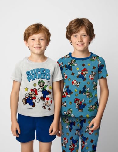 • Official Super Mario Product - Your child will love getting ready for bedtime with this Official Super Mario 4-piece pajama short set, featuring vibrant colors and graphics of their favorite Nintendo characters- Mario, Luigi, and Bowser. Made from soft, comfortable materials, they're perfect for lounging around the house or getting a good night's sleep. The matching set includes 2 short sleeve tops, shorts and matching pants. Available in sizes 4 - 10.