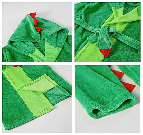 LOLANTA Kids Robe Boys Girls Dinosaur Plush Fleece Hooded Bathrobe with Belt Animal Soft Sleepwear 4