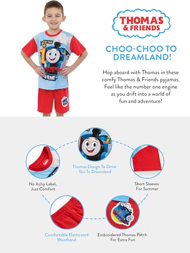 • Fun Embroidered Patch: Discover a playful touch of an embroidered patch adorned with a Thomas to these Thomas Train Short Pajamas . The comfy elasticated waistband shorts make bedtime or lounging around more exciting