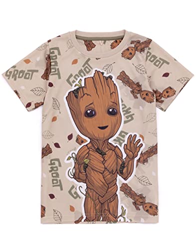 • I AM GROOT CHARACTER ALL OVER PRINT DESIGN - These adorable Marvel pyjamas come in beige featuring an all-over print of the loved animated tree, Baby Groot surrounded by leaves making the set a must-have for fans.