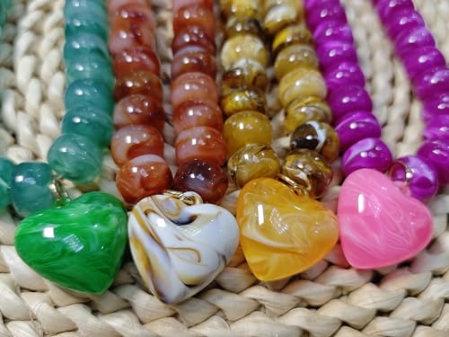 • STATEMENT DESIGN: Eye-catching chunky beaded necklace featuring vibrant colors including pink, green, yellow, and brown with a charming heart pendant accent