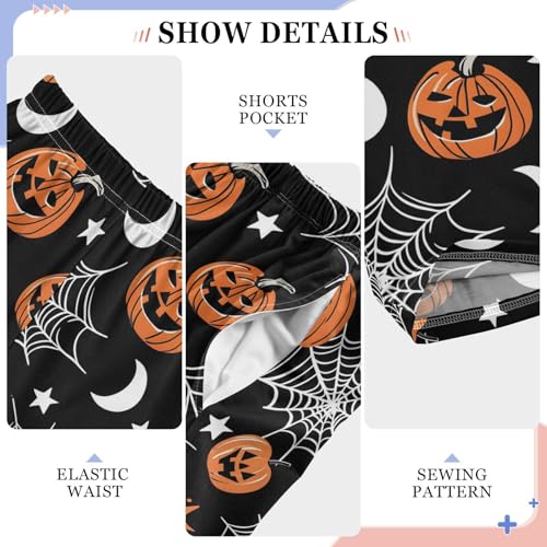 Halloween Pajama Pants Spider Web Moon Pattern Long Sleep Pants Lounge Bottoms 7
