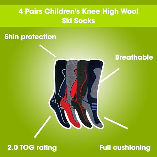 4 Pack Mens Womens Kids Extra Warm Winter Knee High Padded Wool Blend Ski Socks 4