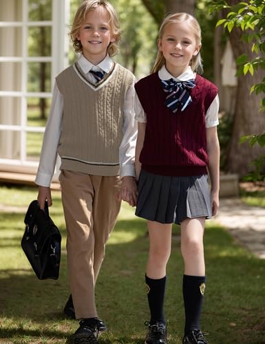 BOBOYOYO Boys Sweater Vest Unisex Cable Knit 100% Cotton Toddler Uniform Vest for Little Big Teenage Boy Girls Childrens Kids 4