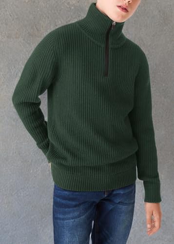 Boys Chunky High Neck Zip Sweater Kids Ribbed Pullover Jumper Winter Knit Tops Outfits 4
