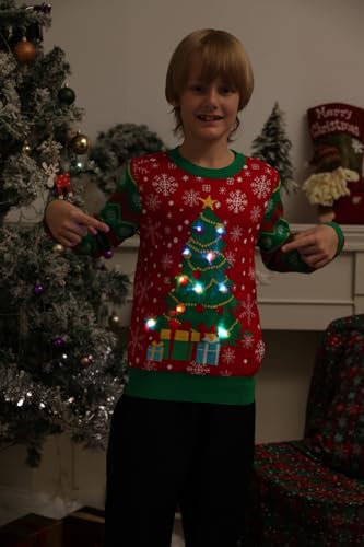 ADUKIDE Boys Ugly Christmas Sweater Xmas LED Light up Sweatshirt Girls Long Sleeve Knit Pullover Size 5-14T 5