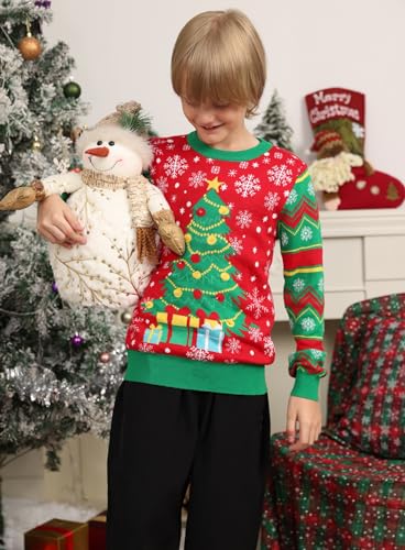 ADUKIDE Boys Ugly Christmas Sweater Xmas LED Light up Sweatshirt Girls Long Sleeve Knit Pullover Size 5-14T 6