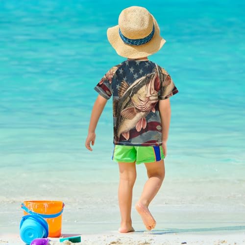 Boys Short Sleeve T-Shirts America Flag Bass Fish Rashguard Kids Swim Shirts Sun UPF 50+ 4