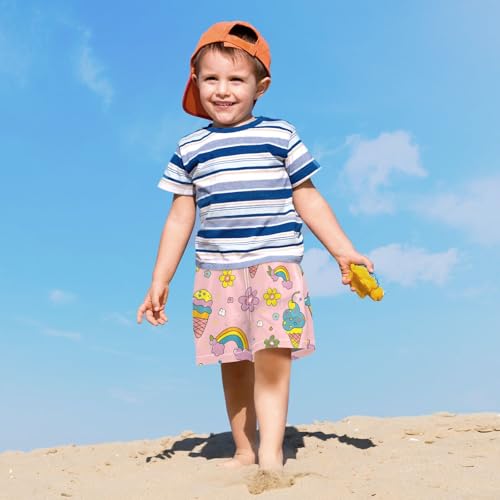 Bolaz Toddler Boys Swimwear Swim Trunks with Compression Liner 4T Rainbow Ice Cream Flowers 7