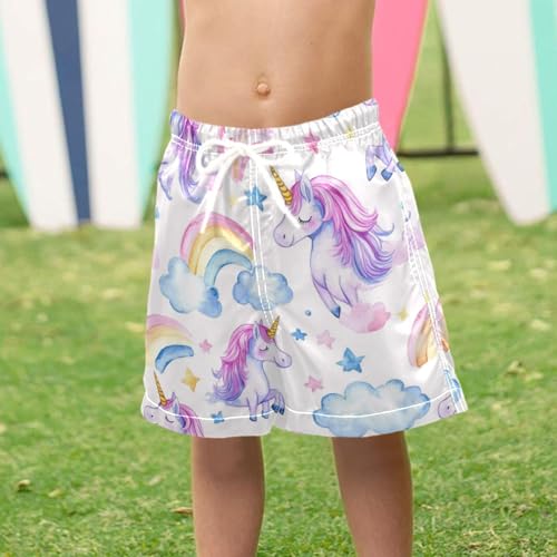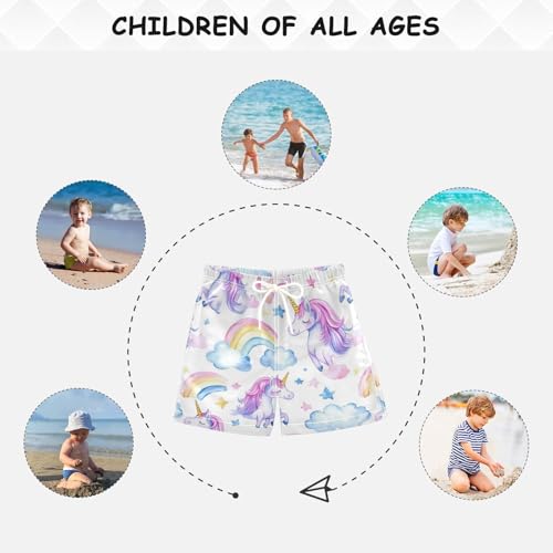 Pigsaly Boys Swim Trunks Watercolor Pink Purple Unicorns Boys Board Shorts Swimsuit Swimwear Summer Bathing Suit S 4