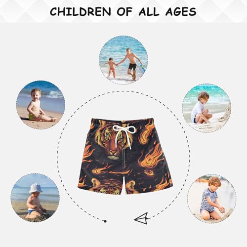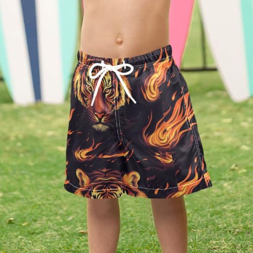 Pigsaly Boys Swim Trunks Digital Fire Tiger Head Boys Board Shorts Swimsuit Swimwear Summer Bathing Suit 2T Multicolor 4