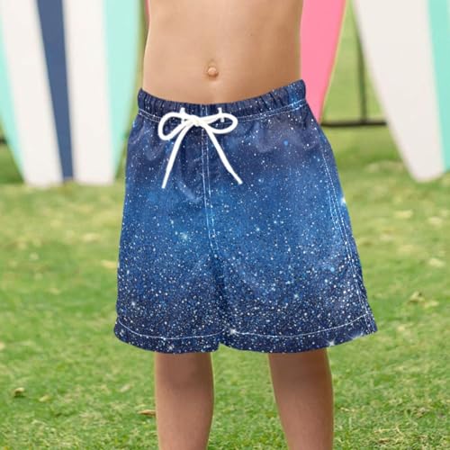 Pigsaly Boys Swim Trunks Cartoon Navy Blue Royal Blue Gradient Flashing Glitter Boys Board Shorts Swimsuit Swimwear S 4