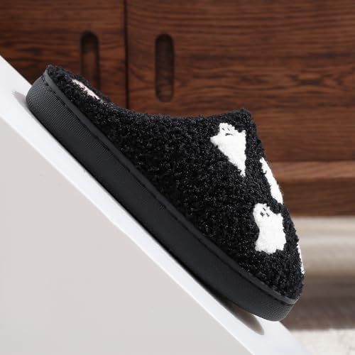 Halloween Slippers for Women, Ghost Slipper Bats Pumpkin Cookie Spider Web Fall and Winter Black Spooky House Shoes for Adult Men Indoor Outdoor, Cozy 6